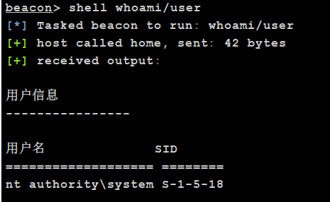 CS拿到webserver主机之后,执行命令,查看当前用户的SID值。
