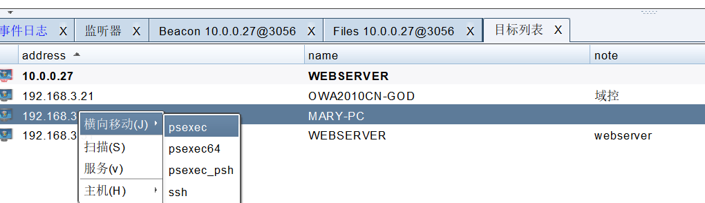 目的:我们通过web渗透拿到了webserver主机的控制权,想要进一步对域内其他主机做横向渗透或者拿下整个域控的权限。