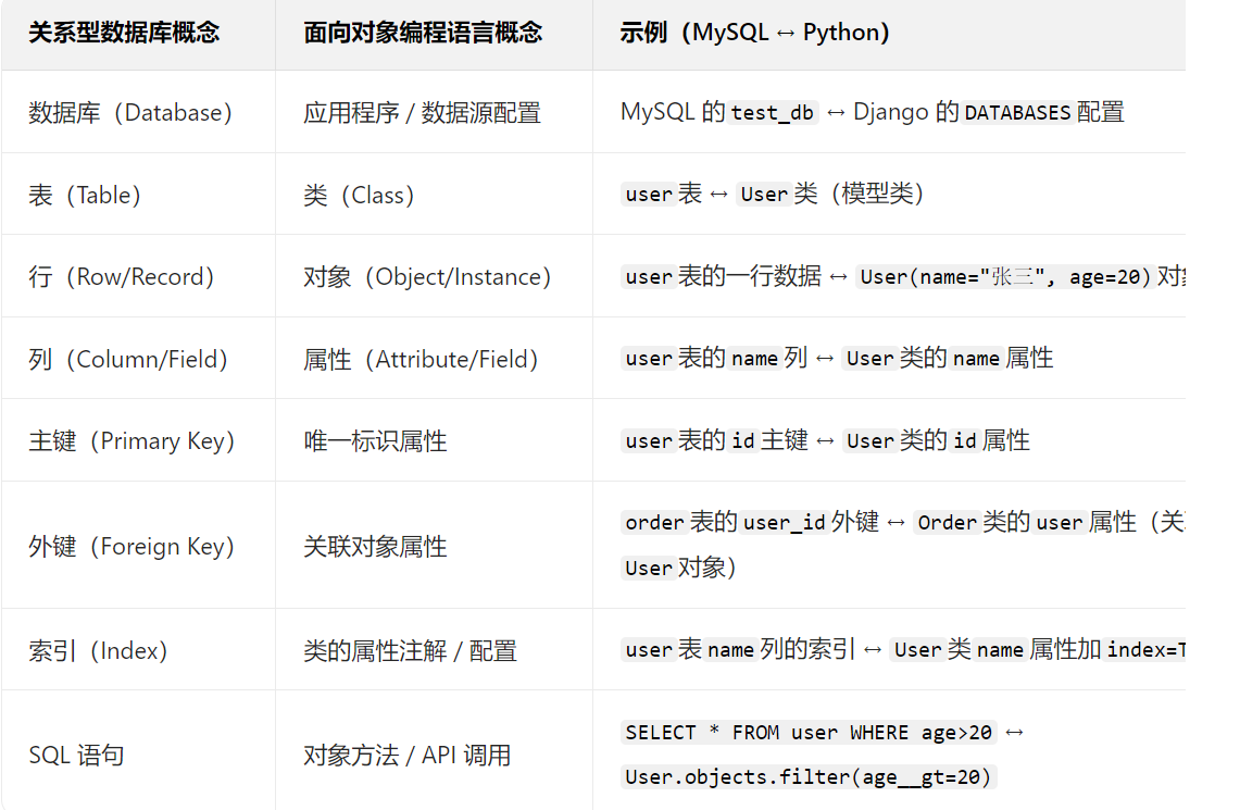 ORM(Object-Relational Mapping)对象关系映射,它是一种程序设计技术,简单来讲就是把数据库的表映射成→编程语言中的类。数据行→对象、字段→属性。