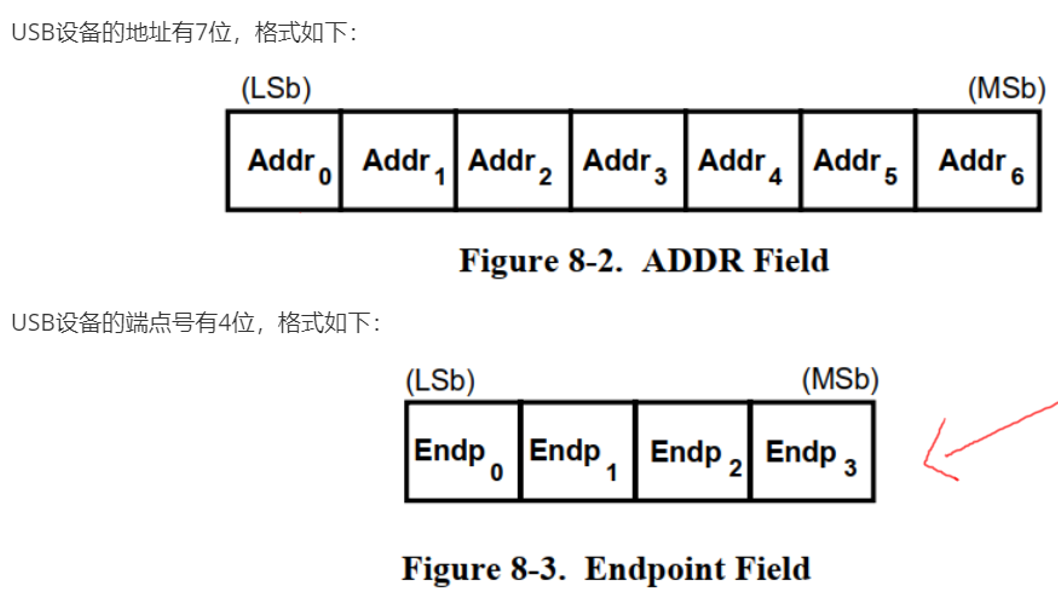 令牌阶段:主机发送IN包(地址+端点)