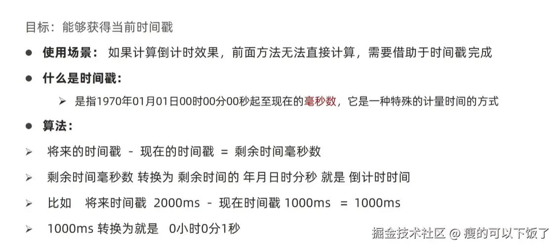 1.第三种方法只能得到当前的时间戳,不能做倒计时