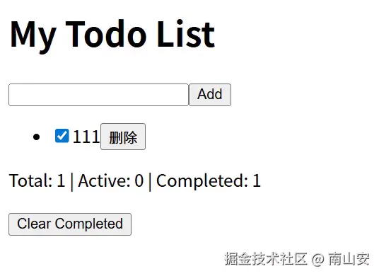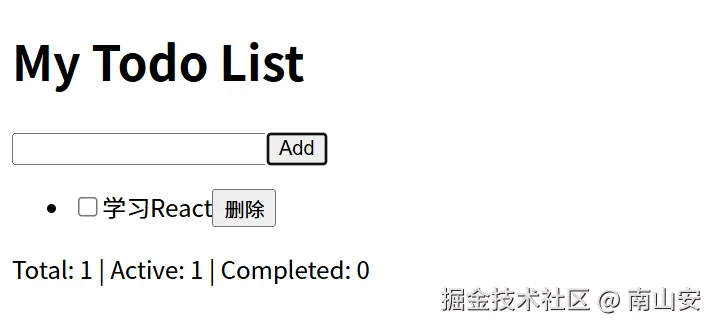 ├── TodoList(列表展示 + 删除 + 切换完成状态)