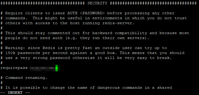 取消 requirepass foobared 的注释,将 foobared 修改为密码