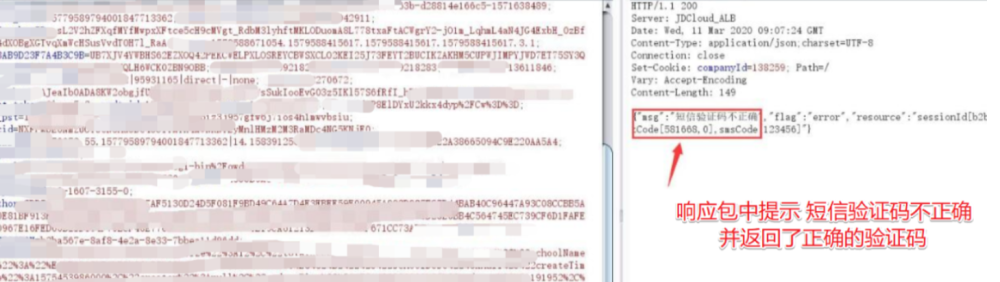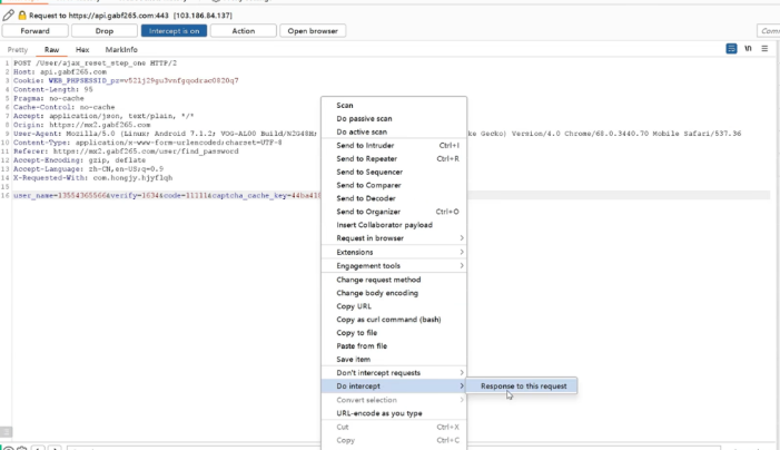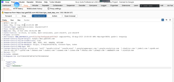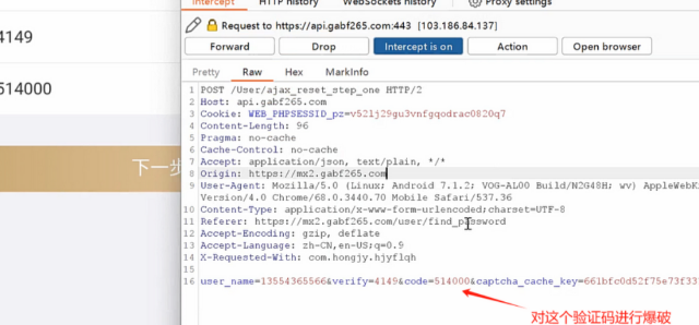 206是错误值,因为手机验证码是我们乱填的,一般200是成功的数值,或者使用自己的手机号做一遍完整的流程响应,重点关注验证手机验证码的响应数据包