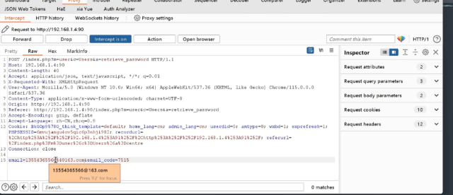 如果数据包存在发送验证邮箱或目标地址,尝试修改到自己接受地,实现拦截获取