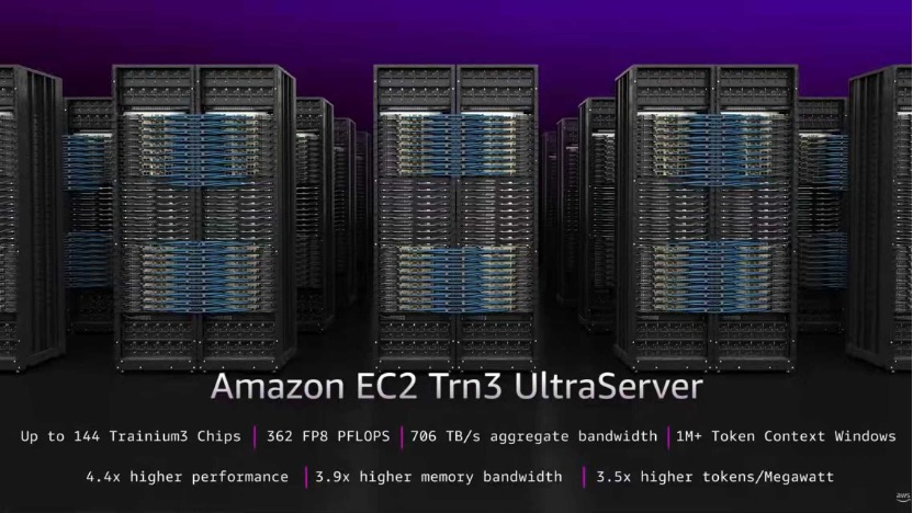 本次大会,亚马逊云科技推出最新一代自研训练芯片Amazon EC2 Trainium3 UltraServers,相比前代,其计算性能提升4.4倍,而更为关键的能效指标:每兆瓦功耗处理的AI Token数量提升了5倍。这直接回应了企业对于大模型训练成本的关切。