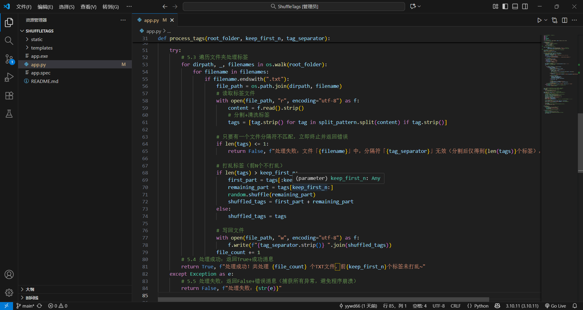 success, message = process_tags(root_folder, keep_first_n, tag_separator)