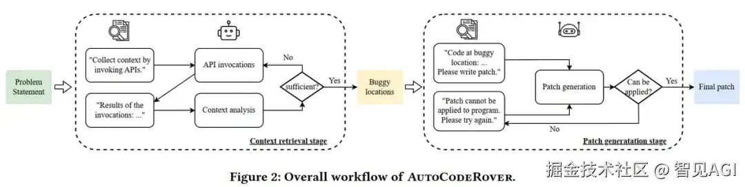从问题描述出发,AutoCodeRover 自动调用相关 API、分析代码、定位 Bug、生成补丁,形成完整闭环。