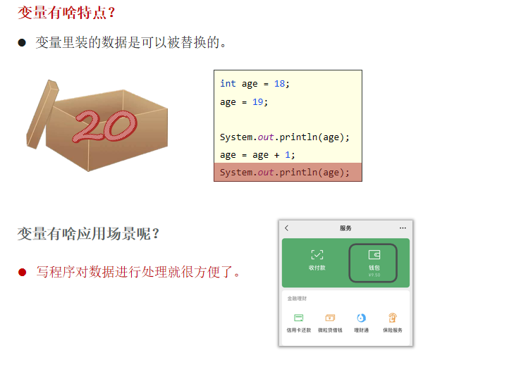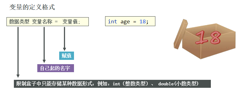 变量就是内存中的一块区域,可以理解成一个盒子,用来装程序要处理的数据的。
