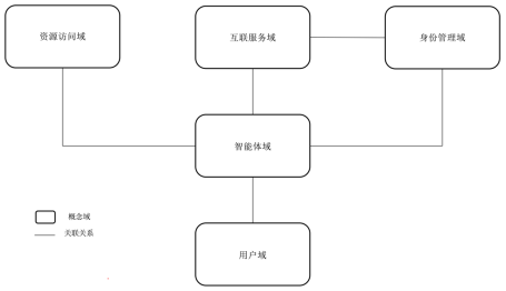 智能体互联由用户域、智能体域、身份管理域、互联服务域及资源访问域共5个概念域组成,各概念域间的连线表示域与域之间存在数据交互关系。