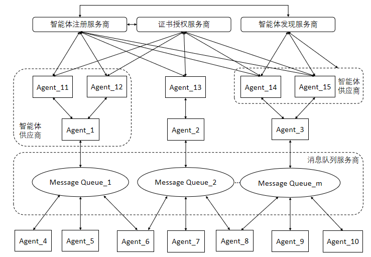 - 互联服务域:互联服务域是智能体互联中智能体描述管理、智能体发现和消息分发的功能集合,为智能体互联中的互联协作提供服务。
