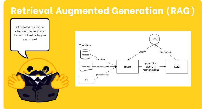 那么,什么是 RAG 呢?LLM 经过大量数据训练以学习通用知识。然而,它们可能没有经过相关和最新数据的训练。RAG 通过从您的数据中查找和检索相关信息并将其提供给 LLM 来解决此问题。