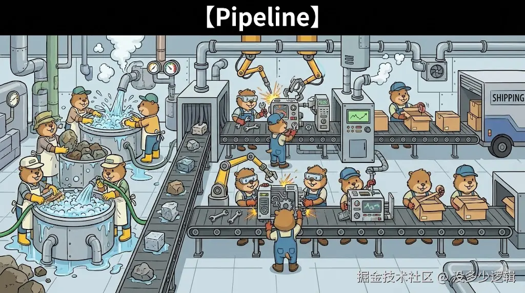 它是什么? 将一个大任务分解为多个阶段(Stage),每个阶段由一组 Goroutine 负责,通过 Channel 连接。