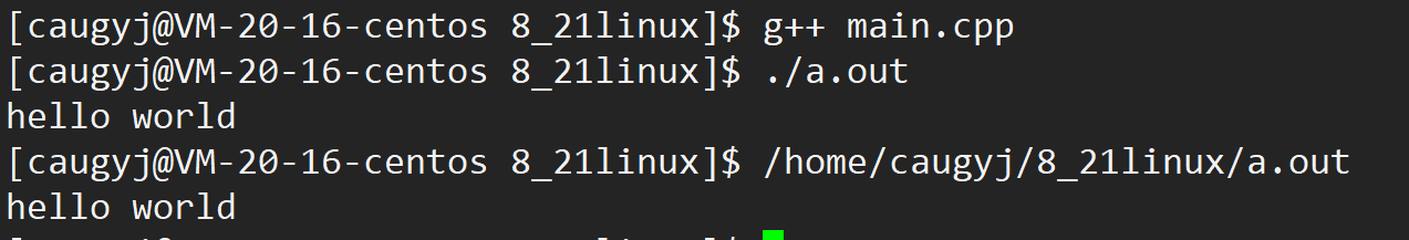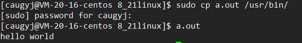 这个图其实有很多信息,一方面体现出了隐藏目录.的作用,另一方面我们可以猜测指令也是可执行程序!事实上ls、pwd等命令就是可执行程序,被放在了规定的目录下面,不带路径执行时默认先去那个目录里面找!所以直接输入a.out不行,因为它不在默认的目录中,哪个目录呢? /usr/bin/ 换句话说,如果我将我的a.out扔在/usr/bin/ 下面,那我的a.out也可以成为命令!