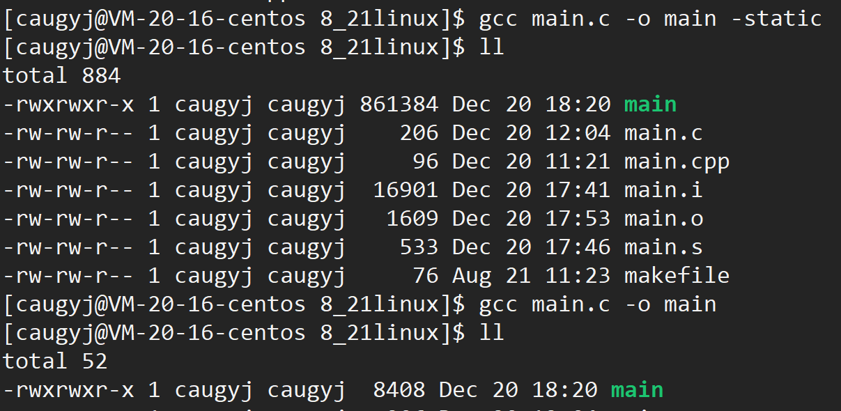 动态库与之相反,在编译链接时并没有把库文件的代码加入到可执行文件中,而是在程序执行时由运行时链接文件加载库,这样可以节省系统的开销。动态库一般后缀名为".so",如前面所述的 libc.so.6 就是动态库。gcc 在编译时默认使用动态库,可以使用静态库。可以带static选项让他静态连接,使用静态库。