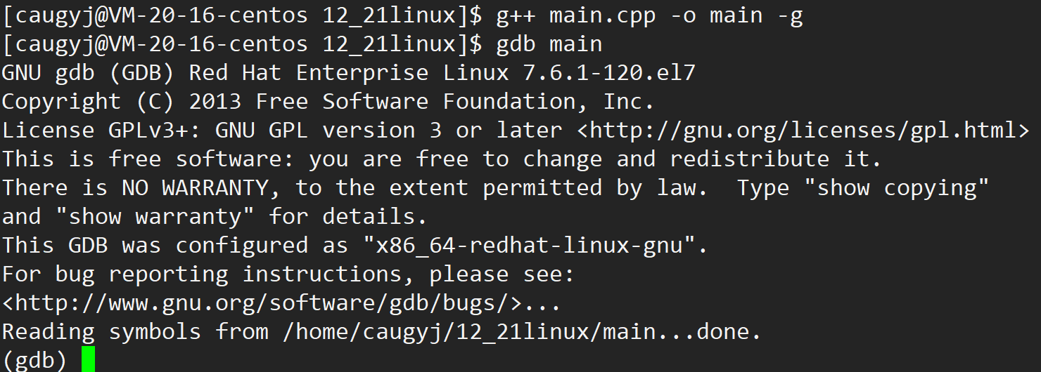 要使用gdb调试,必须在源代码生成二进制程序的时候, 加上 -g 选项