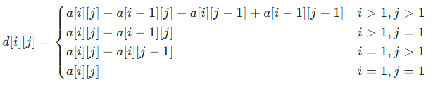 ret[i][j]=ret[i-1][j]+ret[i][j-1]+arr[i][j]-ret[i-1][j-1];