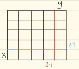 在计算此阴影部分的面积,我们应该利用[x-1,y][x,y-1][x-1,y-1][x,y]这四个点;因为以[x-1,y]与[x,y-1]位置为右下角的两个部分有重叠部分,多加的部分要减回来,即以[x-1,y-1]为右下角部分面积,最后,还需要加上原数组中的右下角的元素[x,y],由此我们可以推出公式: