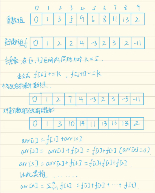 差分数组初始化:d[1]=a[1]d[i]=a[i]−a[i−1](2≤i≤n)