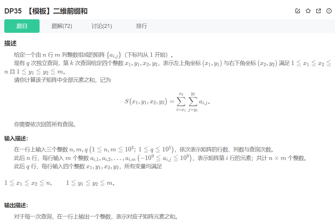 前缀和分一维和二维两种,这里我主要分析二维的,一维的比较简单;