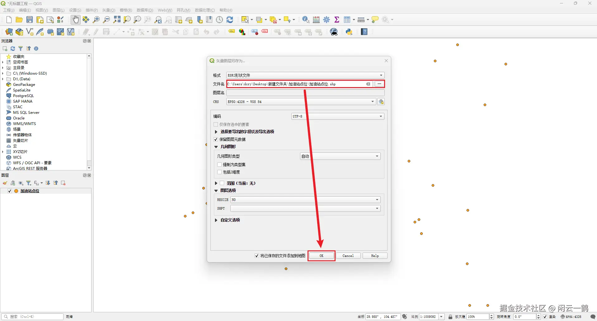 4. 用 QGIS 将 csv 文件转换为 shp 文件
