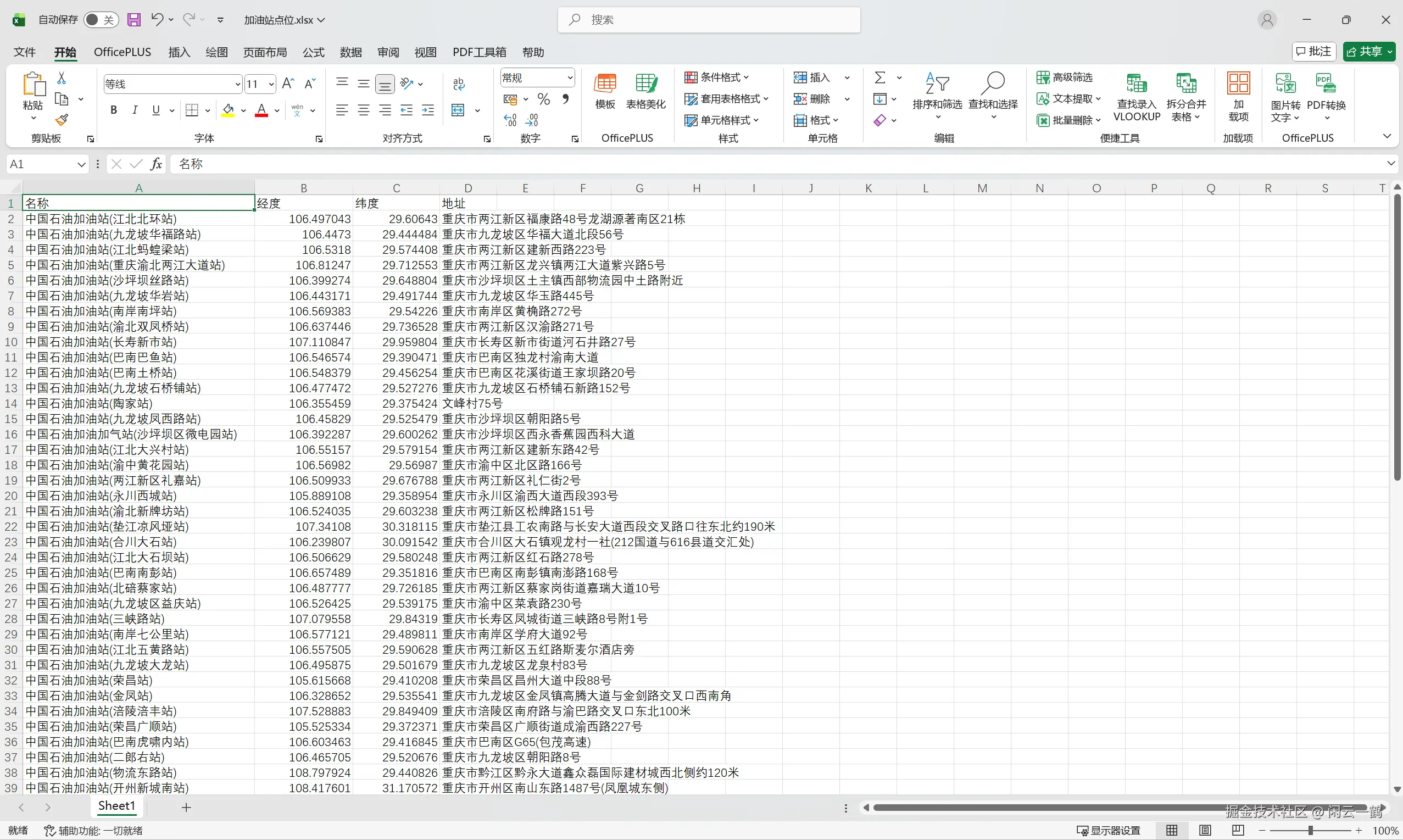 1. 先将 poi 点位数据导出为带有经纬度的 Excel 文件(xlsx 格式)