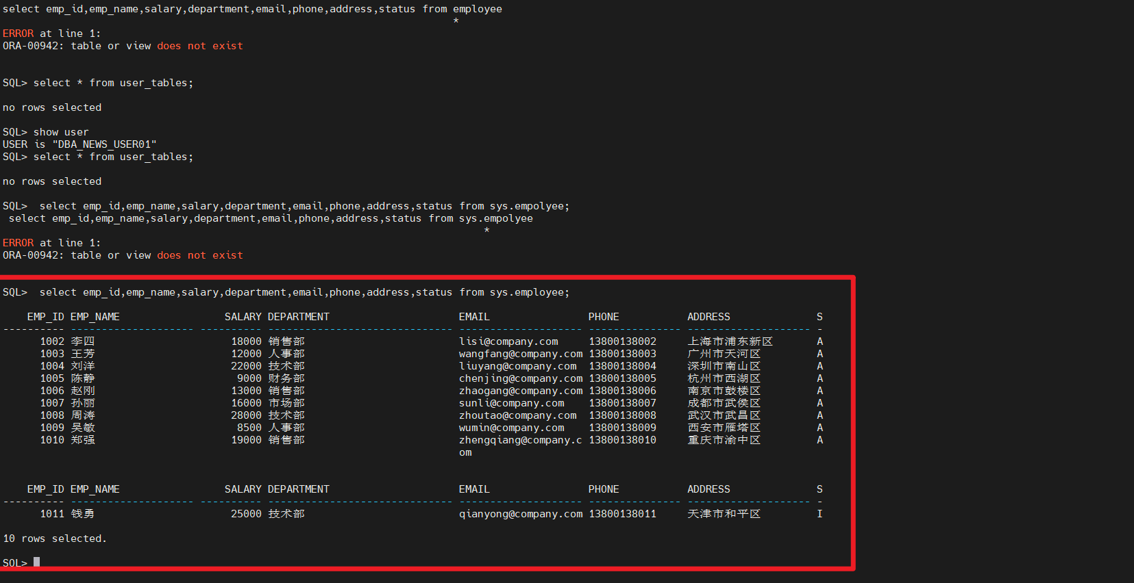 第5行设置用户dba_news_user01的临时表空间是TEMP。