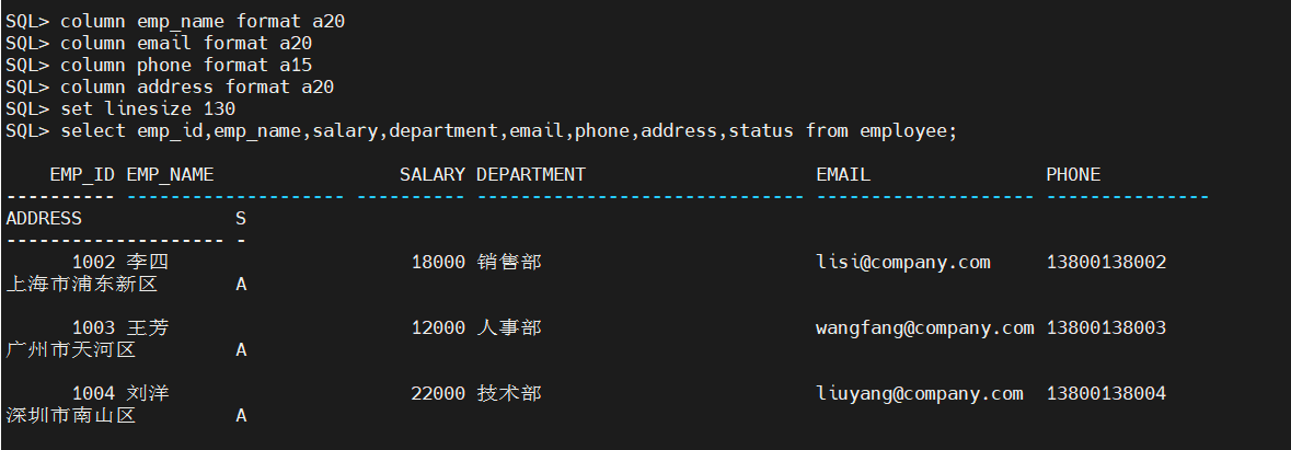 SQL> set linesize 130