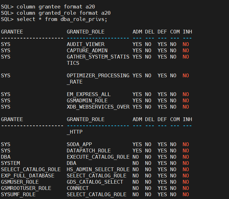 column granted_role format a20;