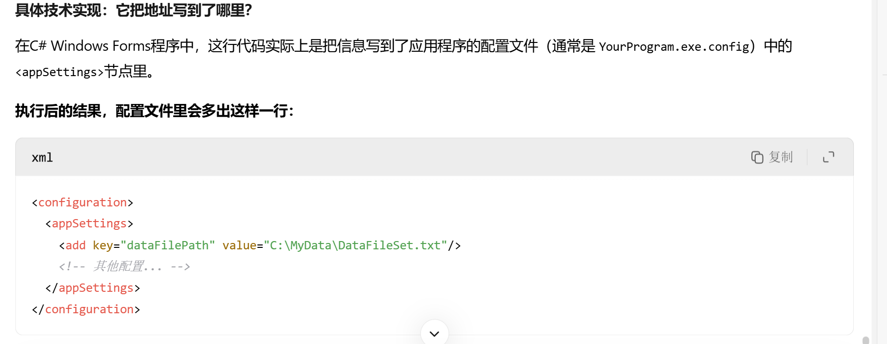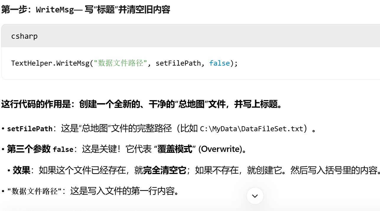 //这行代码 TextHelper.WriteMsg("数据文件路径", setFilePath, false);
