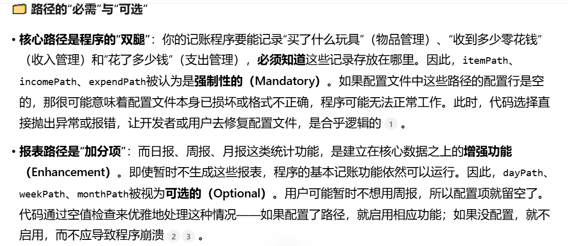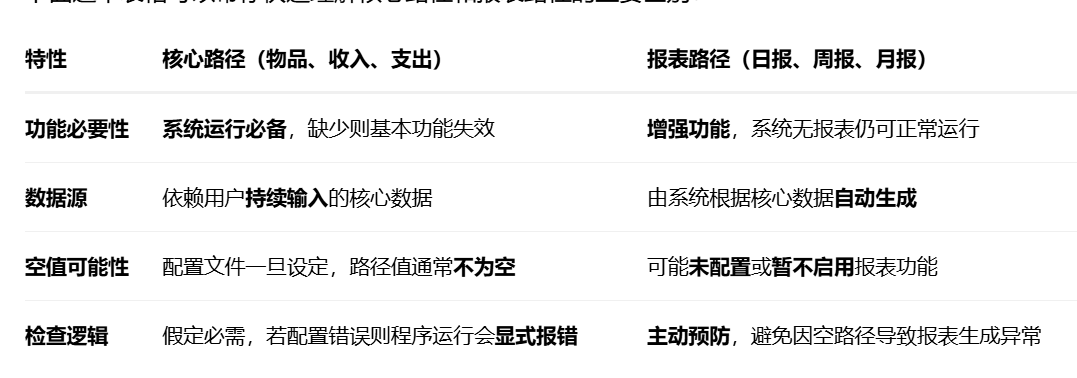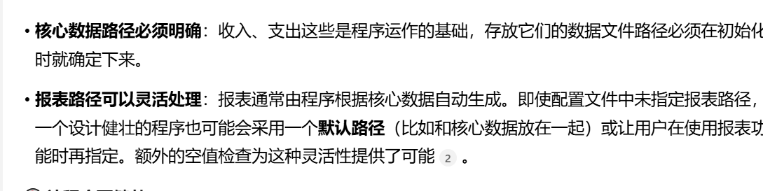 为什么周报月报路径,需要检查是否为空 其他不用检查,收入路径、支出路径等 if (!string.IsNullOrEmpty(lines[6].Split(' ')[1]))