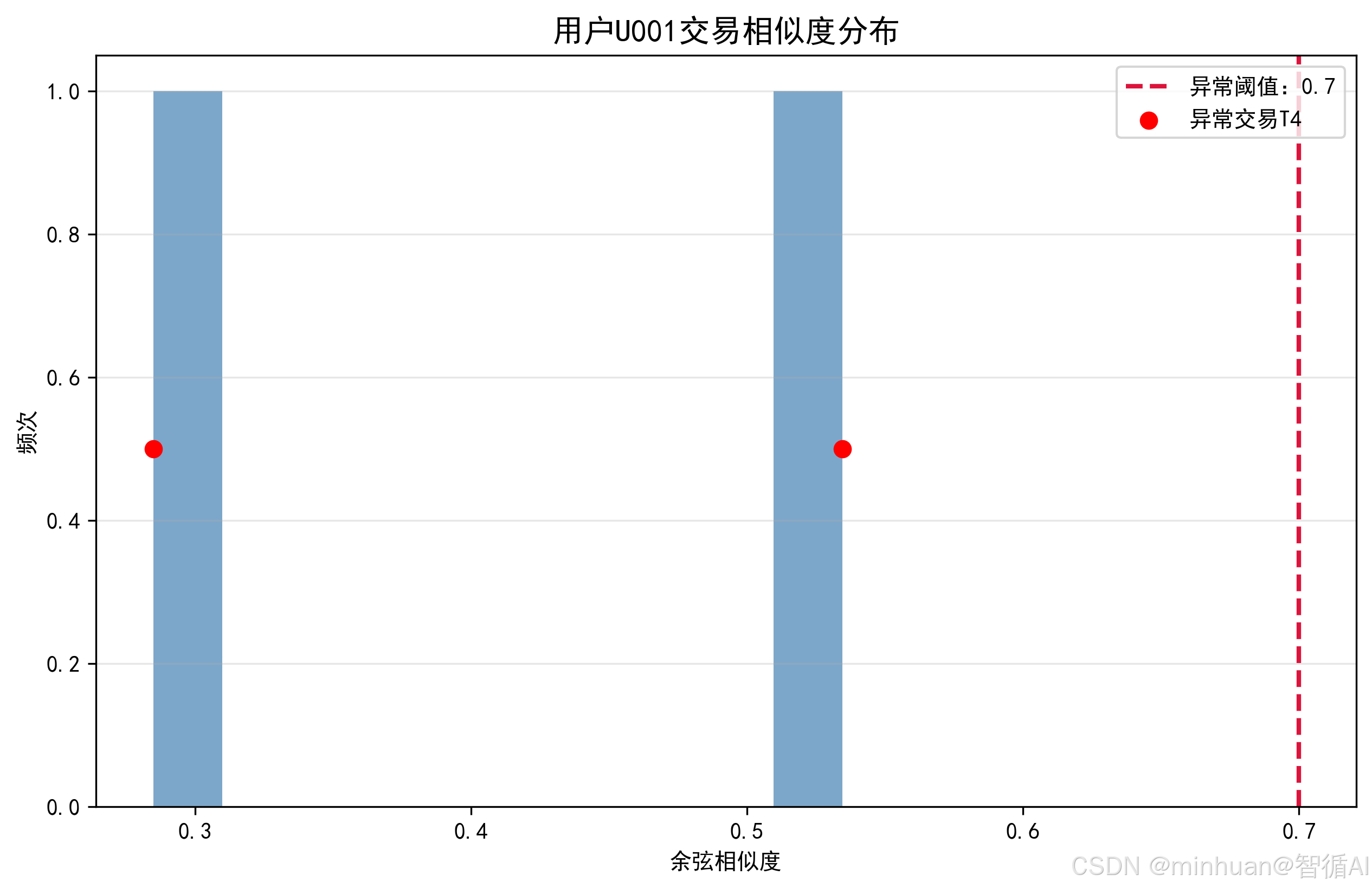 - 若平均相似度低于预设阈值,判定为异常交易,触发拦截或人工审核;反之则判定为正常交易