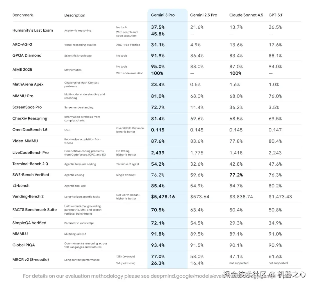 Gemini 3 在多项关键 AI 基准测试中处于最先进水平。