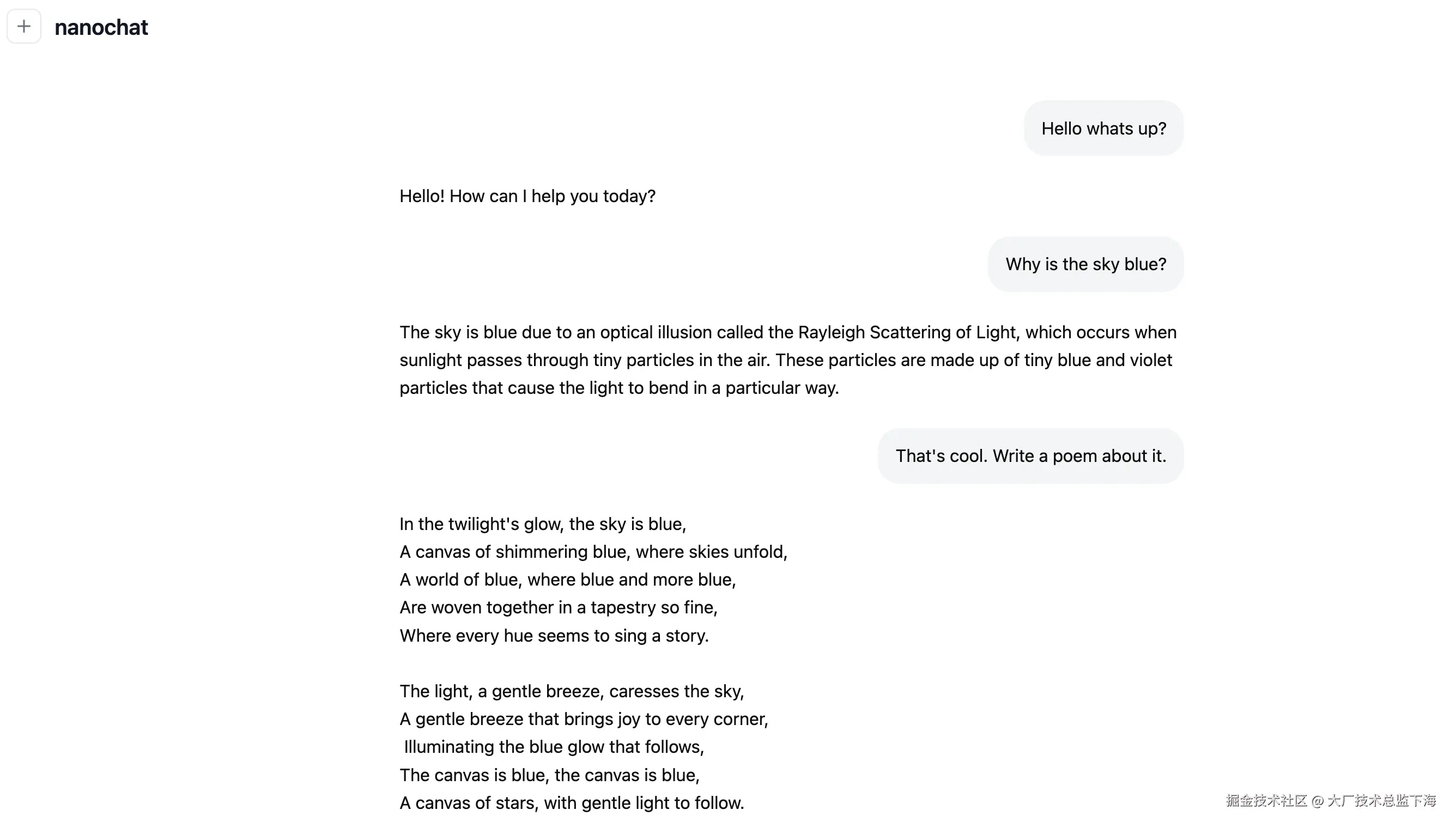 nanochat 是一个极具特色的工程项目,其技术价值不在于追求最先进的性能,而在于精心设计和实现了一条从零到对话的、低成本的、透明的 LLM 生产路径。通过对计算资源的极致规划、对代码复杂度的严格控制以及对教育目标的坚定聚焦,它为想要深入理解 LLM 内部机制的研究者和开发者提供了一个近乎理想的"沙盒"。