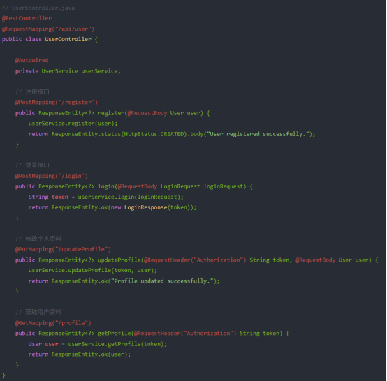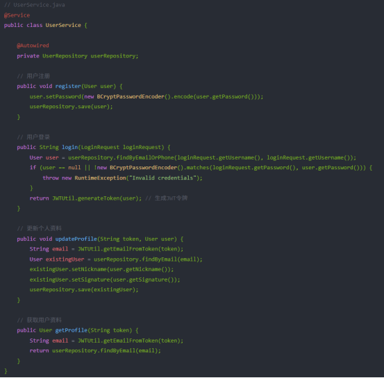 用户注册与登录:提供用户通过邮箱/手机号注册,登录后返回JWT令牌用于身份验证。