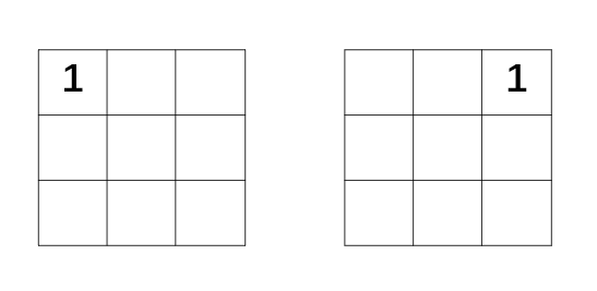 左上角 (0, 0),顺时针旋转之后位置变成了右上角(0, n-1)。