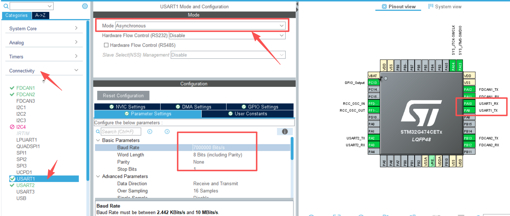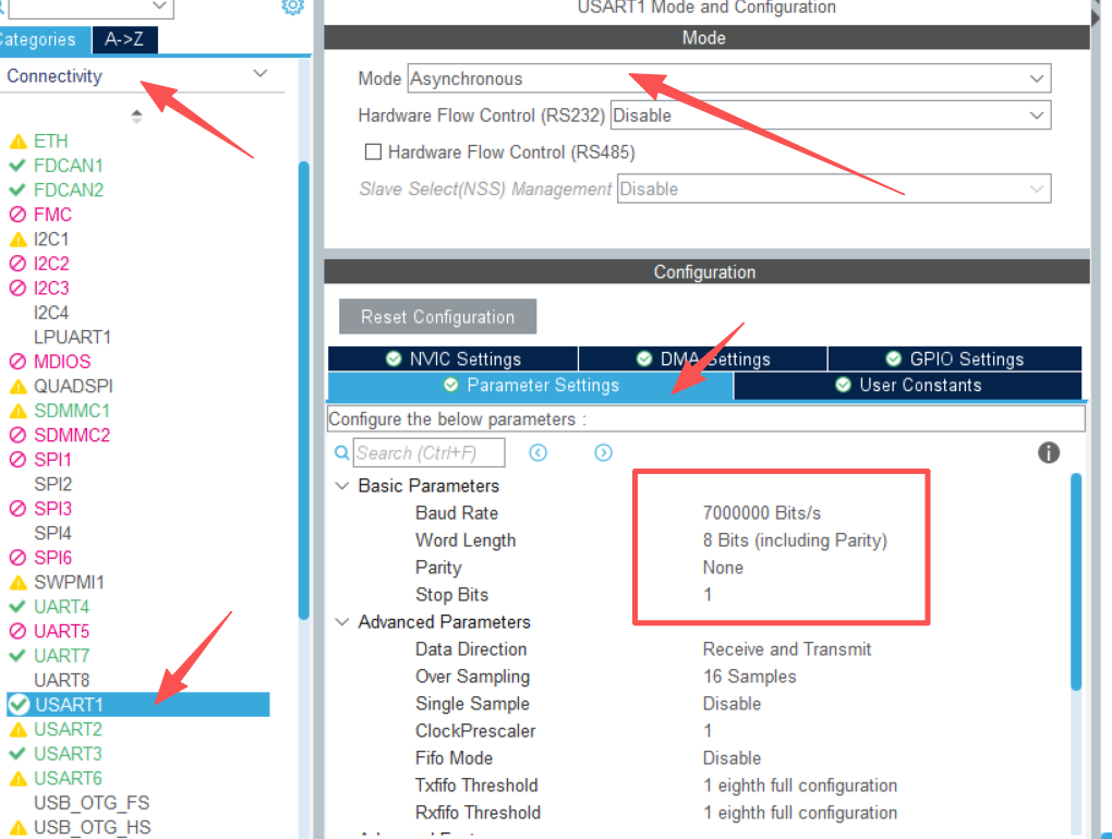 huart1.Init.BaudRate = 7000000;