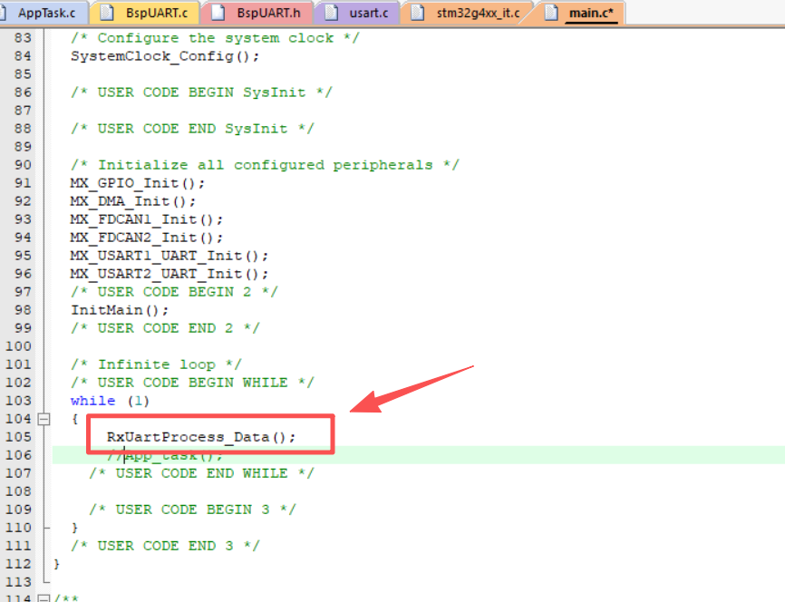 //串口接收协议解析--放入主循环,实时运行
