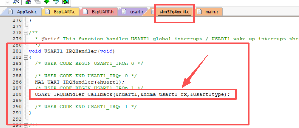 调用位于stm32g4xx_it.c文件内