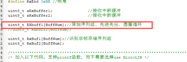 static uint8_t RXbuff[BuffNum];//原始序列组,先进先出,圆圈循环