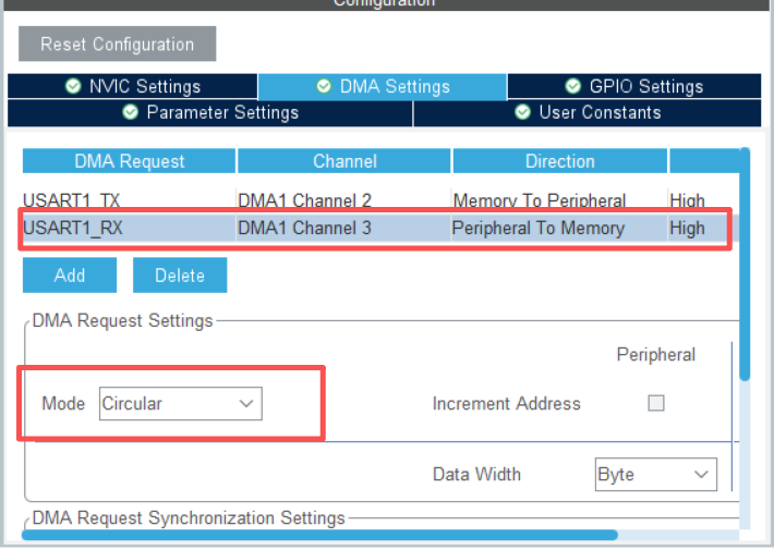 HAL_UART_Receive_DMA(&huart1, Usart1type.DMARxBuffer, BuffNum); // 启动DMA循环接收