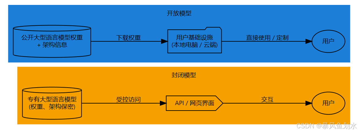 开放模型与封闭模型的核心区别在于模型本身的访问权限和控制权。封闭模型提供服务,而开放模型提供底层组件。