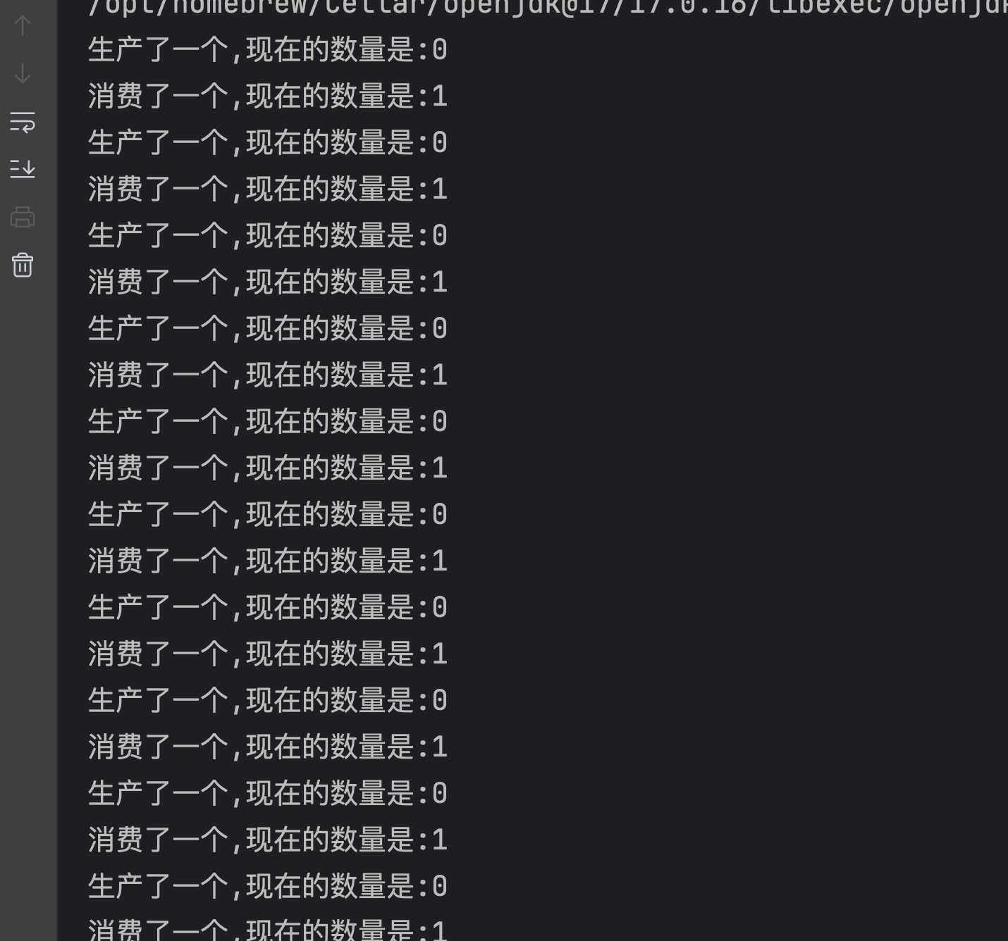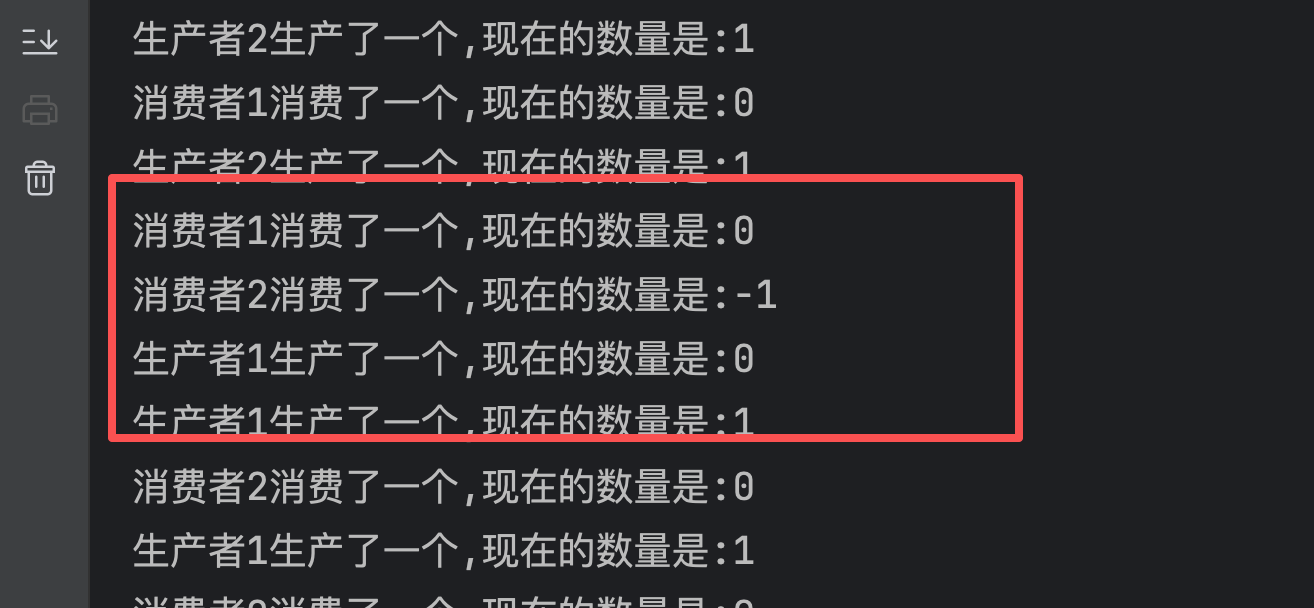 System.out.println(Thread.currentThread().getName() +"消费了一个,现在的数量是:" + num);