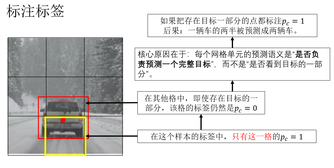 这种设定在"目标数量较少、尺度差异不大"的场景下是可以工作的,但它很快就会暴露出一个致命问题: 一个网格里,可能同时存在多个不同目标。
