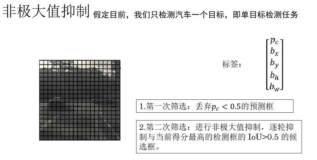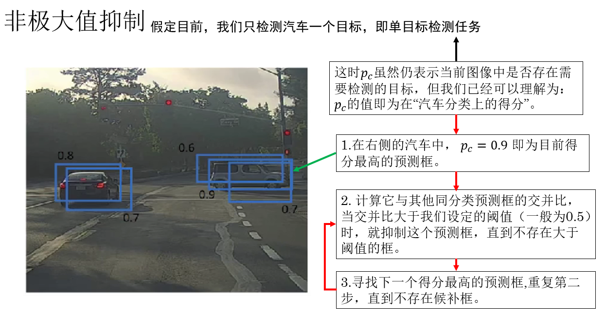 总结一下:在多类别目标检测中,\(p_c\) 只负责判断"是否存在目标",真正用于筛选、排序和执行 NMS 的,是结合了类别信息的"分类得分"。