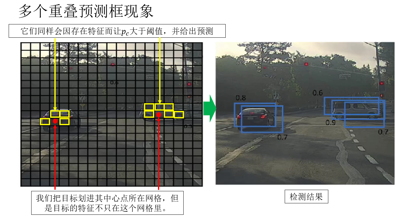 所以就会出现这样一种现象:模型明明已经"找对了目标",却给出了很多个高度重叠的预测框。