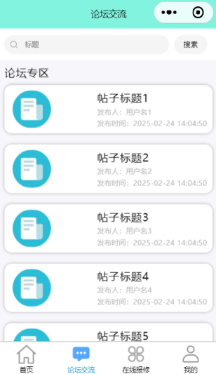前台:用户:登录注册、论坛交流、在线报修、维修预约管理、回访记录、我的发布、客服聊天、 修改密码