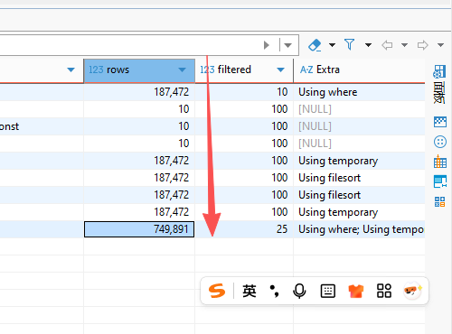 显示预估需要查询的行数。对InnoDB表来说这是个预估值,并非是个准确值。