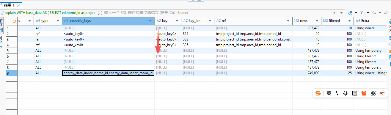 可能使用的索引键,指出MySQL能使用哪个索引在表中找到记录,查询涉及到的字段上若存在索引,则该索引将被列出,但不一定被查询使用。