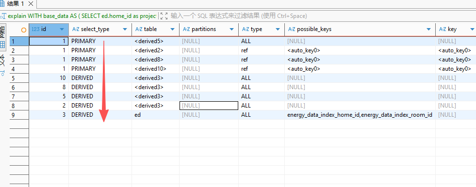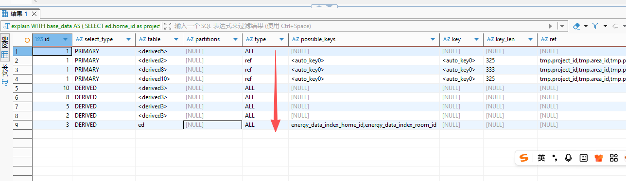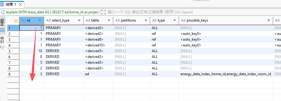 id的话,在我们使用的SQL比较复杂的时候,在MySQL优化器的工作下,我们的SQL语句实际上是被拆分成了多个语句来执行,这时候就会有多个id来区分。